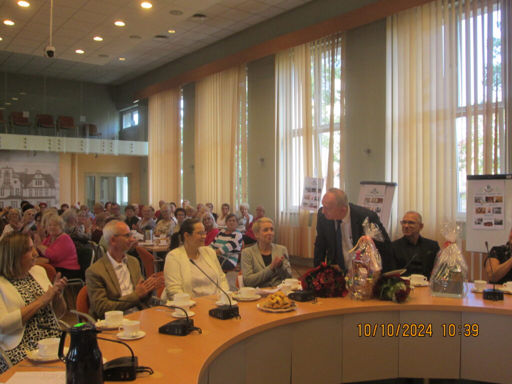 Całe nasze 20-lecie przedstawił wyczerpująco Pan Burmistrz Jarosław Kielar, natomiast w uzupełnieniu wspomnień w piękny sposób mieli udział: Pan Starosta Mirosław Birecki, Pan Andrzej Nowak oraz Pan Krzysztof Soberka.